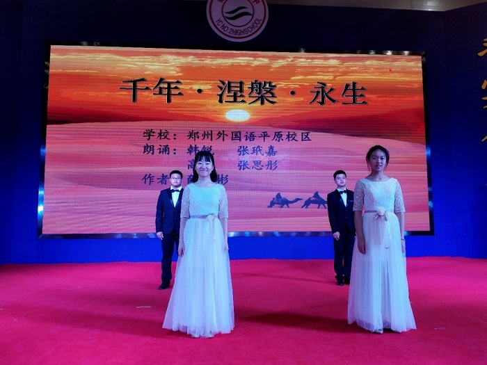 本次诗会的主题是“塞上春吟”,我校的参演作品为高中部语文教师薛玉彬的原创诗歌《千年·涅槃·永生》,这首诗以豪放的风格写出了银川的历史变迁,表达了对生活在这一片神奇土地上人们的赞美之情,得到了嘉宾的一致肯定。