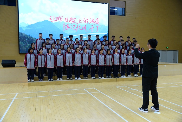 本次大合唱,各班级精心挑选了多首经典爱国歌曲,如《如愿》、《紫荆花盛开》、《强军战歌》、《精忠报国》、《万疆》、《强国一代有我在》等。每一首歌曲都承载着厚重的历史情感,同学们齐聚一堂,以歌传情,以曲达意,共同缅怀那段光辉的历史,表达了我们对先辈的敬仰和对祖国的热爱,唱出了中国青年的热血,唱响了时代的号角。